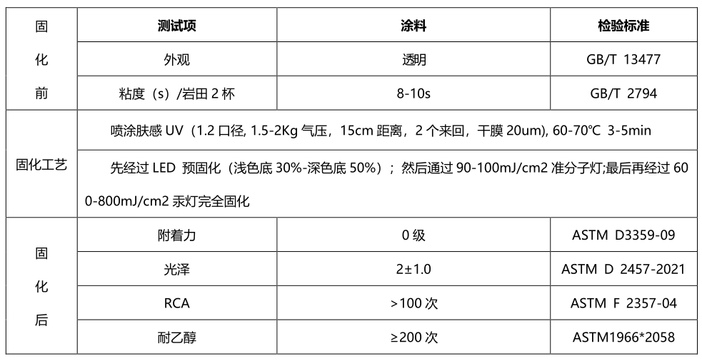 以(yi)上性能(néng)數(shu)據均在(zai)上述固化條件推薦下,塗膜按我(wo)司規定烘烤固化工(gong)藝,室溫放置 48h 後(hou)方(fang)可(kě)進(jin)行全項(xiang)性能(néng)測(ce)試。本(ben)公(gōng)司對測(ce)試條件不同或産(chan)品(pin)改進(jin)造(zao)成(cheng)的(de)數(shu)據不同不承(cheng)擔相關責任。